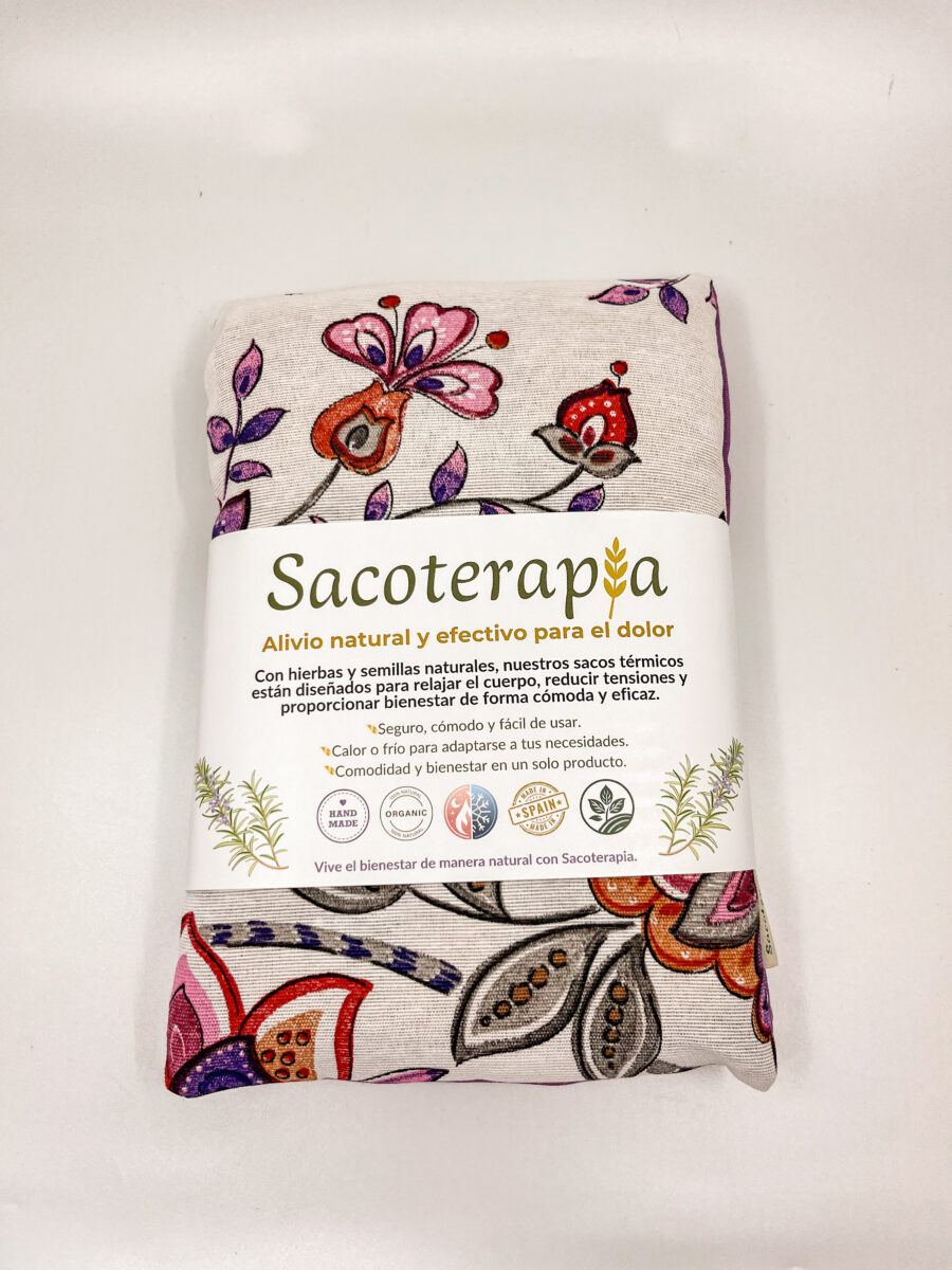 Saco térmico relleno de semillas y hierbas naturales para un rápido alivio del dolor , mediante la aplicación de calor o frío.
