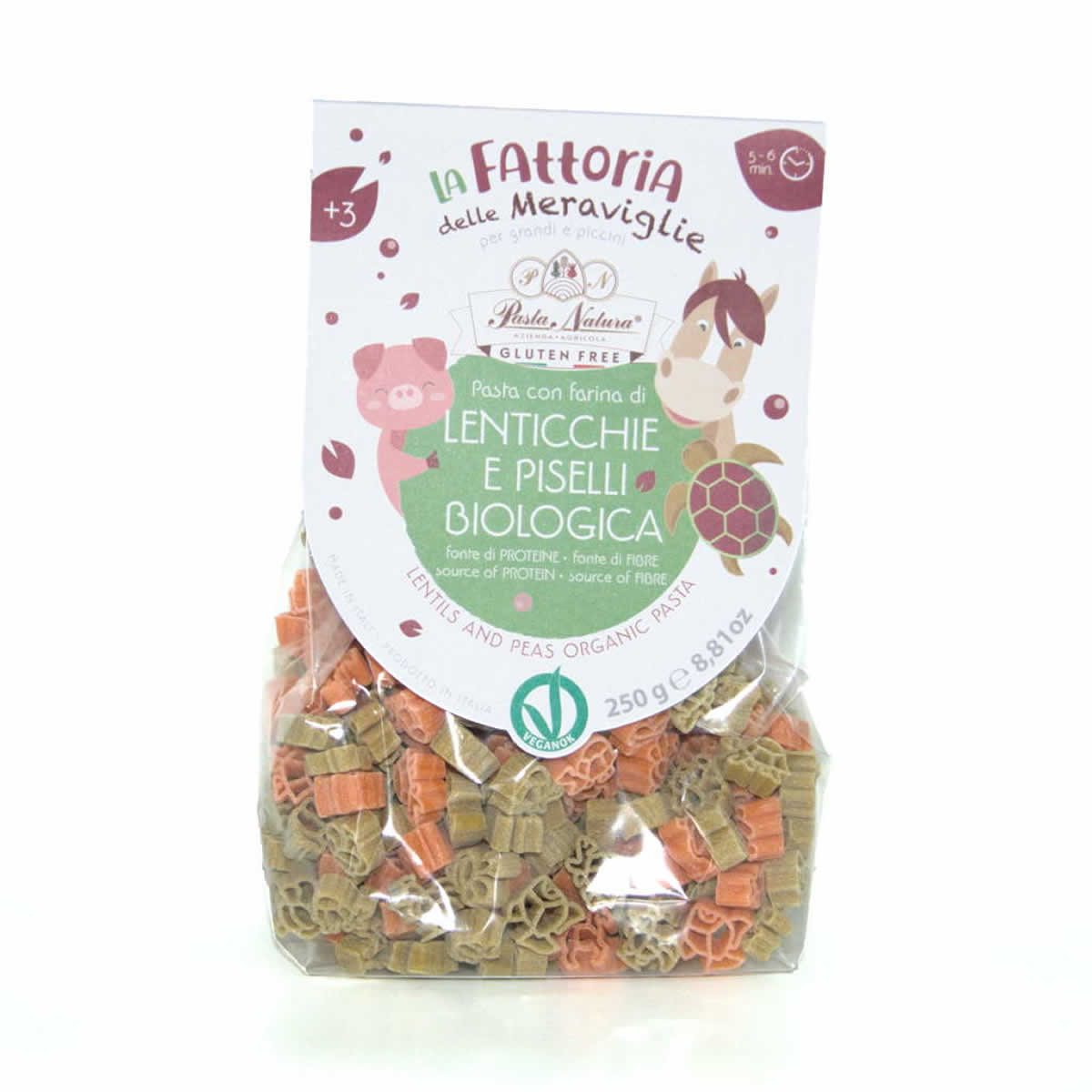 Pasta kids lenteja y guisante, es un producto artesanal, sano y sabroso, perfecto para ser utilizado en la elaboración de deliciosos primeros platos y capaz de abrir el apetito y satisfacer a todos.